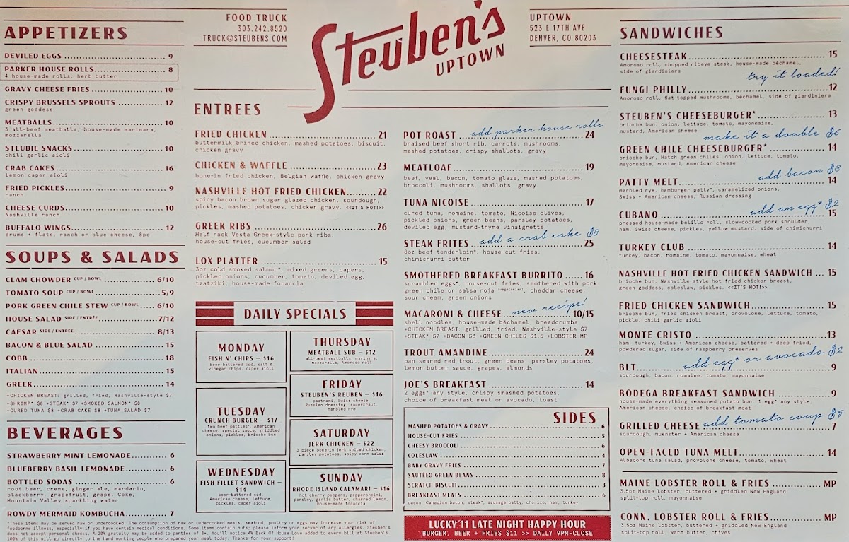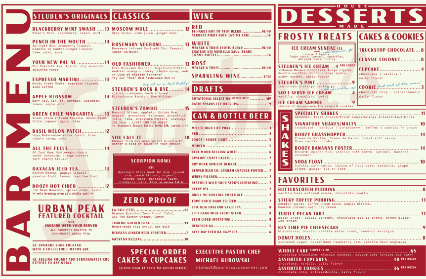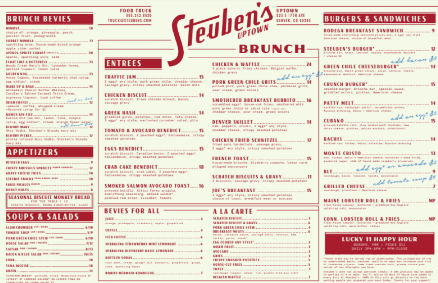 Welcome to Steuben's Uptown, a fine dining gem nestled in the heart of Denver, at 523 E 17th Ave. This upscale restaurant redefines comfort food, blending familiar flavors with gourmet execution.